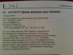 Окрім цього Інститут Івана Франка НАН України (вул. Драгоманова, 18) став місцем проведення низки заходів у рамках програми 25 Book Forum: