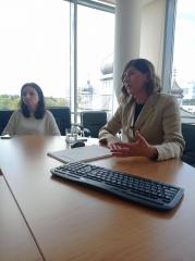 Зокрема, свої думки про антивоєнні твори Марійки Підгірянки та її долю висловила к. філол. н., старша наукова співробітниця відділу франкознавства Інституту Івана Франка Оксана НАХЛІК. Докладніше про книгу Катрі Гриневичевої "Непоборні" та особливості її прози розпитувала к. філол. н., наукова співробітниця відділу франкознавства Інституту Олександра САЛІЙ. А в.о. вченого секретаря Катерина ШМЕГА поцікавилася планами Алли Швець стосовно можливості видання антології жіночої воєнної прози.