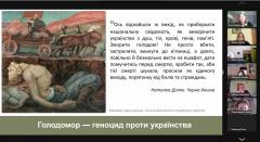 Доповідачка наголосила на зображенні голоду як одного з найбільших генетичних страхів людини й водночас як одного з найстрашніших знарядь знелюднення, що поїдає і нищить не тільки тіло, а й людську особистість. Як приклад таких деструктивних процесів в українському суспільстві у час Голодомору було проаналізовано художнє зображення реміфологізації простору дому, перетворення його зі сакрального на готичний, на мертву пустку як свідчення про руйнацію людиновимірного світу, а також використання особливого типу метафорики, що описує нищення й загибель людини і спільноти як процес викорчування, витягування, видирання з корінням із рідної землі – руйнування самого аксіологічного центру українства.