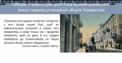 грудня 1884 року, коли у Станіславові заснувалося “Товариство руських женщин”, про яке мова піде далі, за активної медійної підтримки й організаційної участи Івана. У назву своєї доповіді я винесла цитату дослідника Франкової творчості Івана Куровця про те, що Франко дав почин до емансипаційного руху, адже вона доводить причетність Франка до цієї суспільної течії».