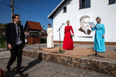 Лунав дитячий гамір, звучали пісні на слова великого поета, линули вітання. І навіть сам Франко (себто чоловік в образі Івана Франка (що його дуже реалістично сценографічно втілив на музейному подвір’ї актор театру «Любарт» Остап Лагойда)), його безсмертний дух постав перед присутніми глядачами театралізованого дійства.