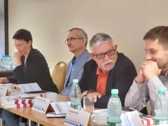 Дискусійна панель. Варшава. Готель «Gromada», конференційна зала,  3 вересня 2023 р. Оксана Пашко, Євген Нахлік, Юзеф Рушар, Антоній Вінх  (головний редактор  місячника «Dialog»).