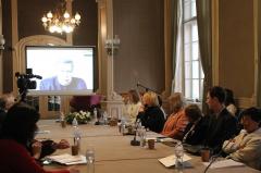 До слова модераторка, докторантка Інституту літератури ім. Т.Г. Шевченка НАН України Оксана Левицька, запросила й директора Інституту Івана Франка НАН України, члена-кореспондента НАНУ Євгена Нахліка. За словами Оксани Левицької, саме цій науковій установі Нонна Хомівна свого часу передала свій книжковий фонд на збереження, крім того в Інституті Івана Франка у 2014 році вийшов науковий збірник на пошану Нонни Копистянської «Діалогічні обертони», і з його електронною версією можна ознайомитися на сайті Інституту.