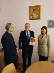 Директор Департаменту Олег ПАСКА поділився історією своєї родини, для якої книжка завжди була в пошані, розповів про свою давню любов до Франкової творчості, про те, що з дитинства зачитувався «Лисом Микитою» та «Абу-Касимовими капцями», а за студентських років заново відкривав Франка, читаючи твори, що не входили до шкільної програми. Відтак перейшли до обговорення інших знакових українських письменників, зокрема й тих, чиї ювілеї відзначатимемо цьогоріч, і домовилися й далі тісно та плідно співпрацювати.