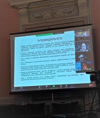 В онлайн-просторі розмову координувала докторка філологічних наук, професорка кафедри німецької філології Львівського національного університету імені Івана Франка, голова Платформи інтермедіальних досліджень Світлана МАЦЕНКА, яка в концептуальному виступі-презентації також зосередилась на детальному огляді роману, наголосивши на його музичній складовій в інтермедіальному контексті.